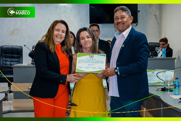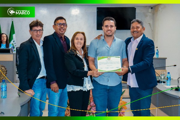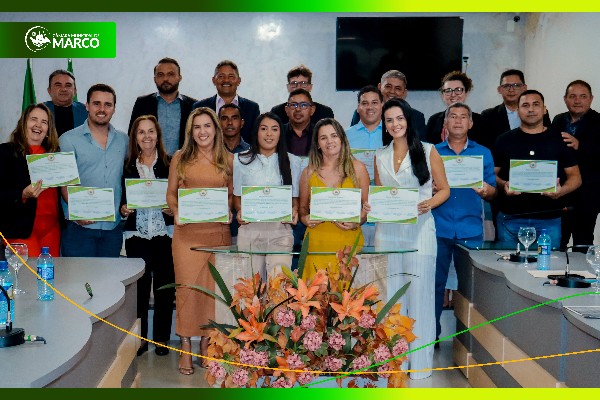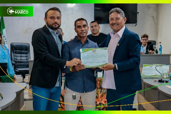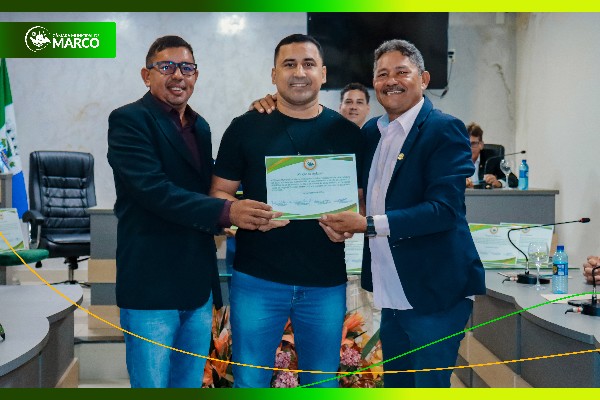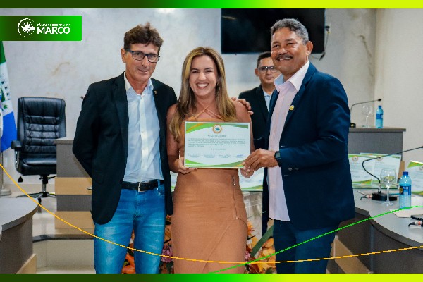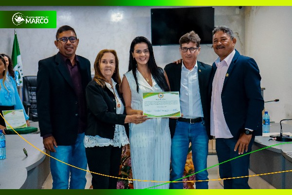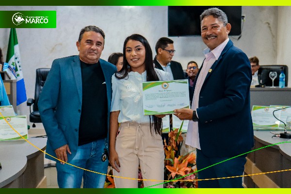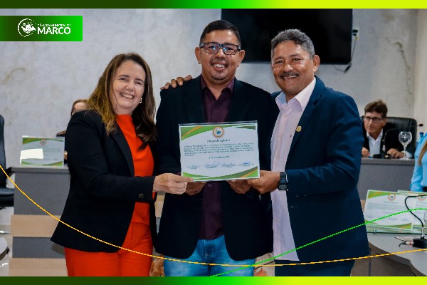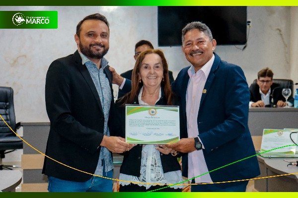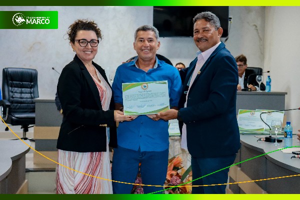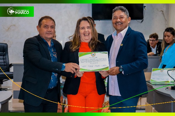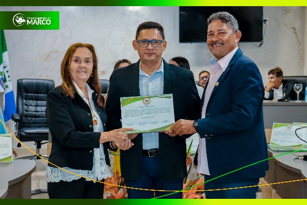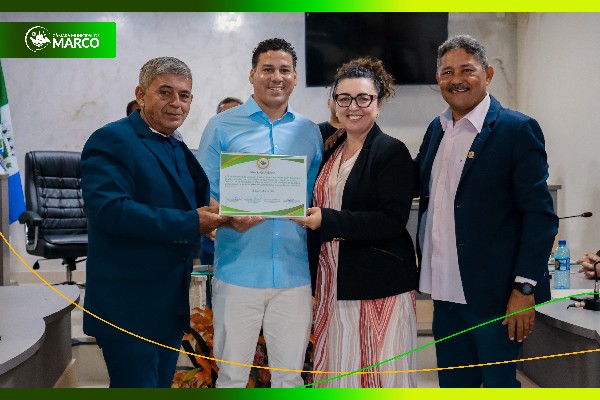 - Presidente, Socorro Osterno Neves - Vice-Presidente, Antônio Gildázio Sampaio Menezes - 1° Secretário e Francisco Robério Vasconcelos - 2° Secretário, no uso de suas atribuições legais e na forma regimental, após deliberação soberana do Plenário da Câmara Municipal de Marco/CE, realizou a entrega, na Sessão Ordinária da segunda-feira 11, de Moção de Aplauso de sua autoria aos candidatos eleitos aos cargos de Prefeito, Vice-Prefeita e Vereadores em Marco, que exercerão seus mandatos no quadriênio 2025/2028.A Moção de Aplauso nº 018/2024, de 18 de outubro de 2024, também subscrita pelos demais Vereadores, buscava felicitar os candidatos eleitos, reconhecendo a soberania popular que os sufragou para os cargos e, assim, para a representação da população do Município nos próximo quatro anos.
