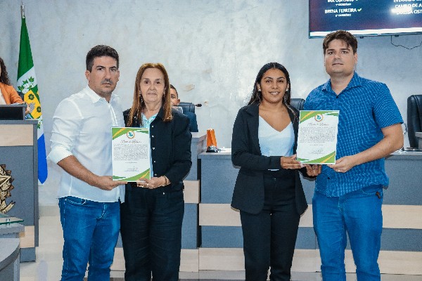 Também receberam Moção de Aplausos Guy Neves Osterno e René Osterno Rios, proprietários do Rebanho Tijuca, pelo empreendedorismo e pelo desenvolvimento da criação de ovinos da raça Santa Inês, atividade que contribui diretamente para a geração de emprego e renda no município.